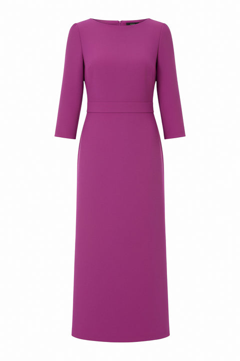 Make a bold statement in this vibrant midi dress by Valentino. With clean lines and an elegant, fitted silhouette, this dress is perfect for any sophisticated occasion. The minimalist design is accentuated by three-quarter sleeves, creating a timeless look that exudes confidence and grace. Crafted from a luxurious fabric, it flows beautifully with every movement, ensuring you stand out in style.