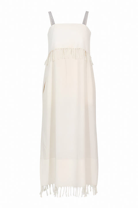 Fabiana Filippi Ivory Fringe-Trim Midi Dress