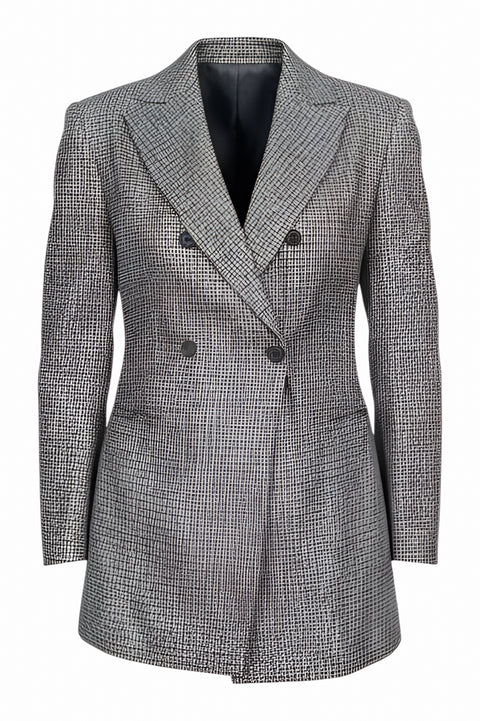 Elevate your wardrobe with the timeless sophistication of Fabiana Filippi Houndstooth Double-Breasted Blazer. This structured blazer seamlessly combines classic tailoring with a modern edge.