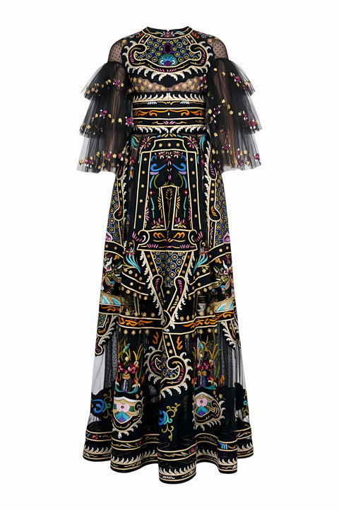 This Valentino gown is a couture masterpiece, perfect for galas, black-tie events, and moments that call for high-impact elegance. Its dramatic embroidery and ethereal sheer details create an unforgettable presence.