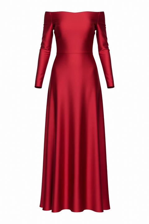 Valentino Off-Shoulder Satin Evening Gown in Red