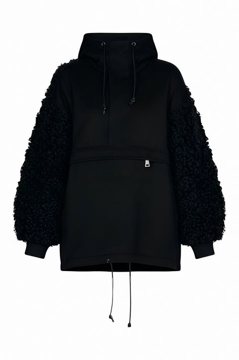 Wrap yourself in Valentino's effortlessly chic style with this Black Shearling-Sleeve Pullover, where comfort meets couture.