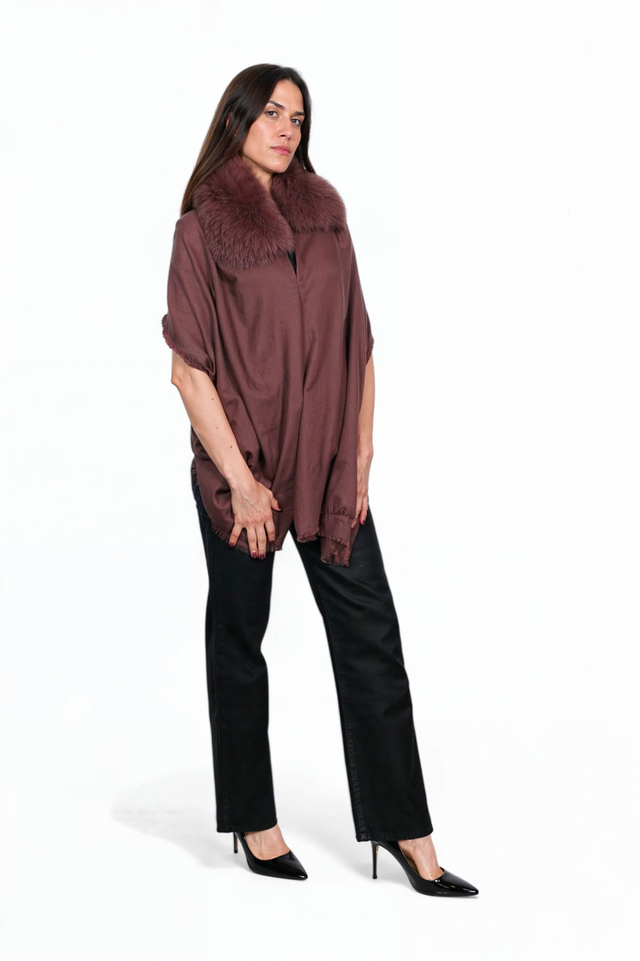 Valentino Garavani Mink Fur Collar Wool Shawl
