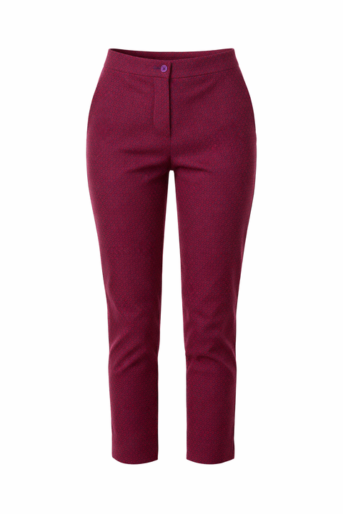 Description:Refined with Etro’s signature attention to detail, these slim-fit pants feature a rich red base enhanced by an intricate micro pattern for subtle visual depth. The tailored silhouette offers a sleek, flattering fit, making them a versatile choice for both polished daytime looks and elevated evening styling.