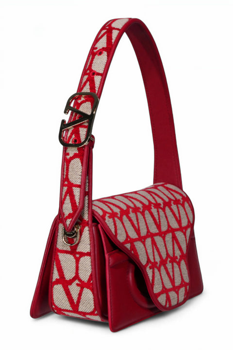Iconic and structured, this Valentino Garavani VLogo shoulder bag embodies the brand’s signature boldness through a graphic interplay of textures and color. Crafted in Italy, the bag features a striking VLogo jacquard canvas with smooth red leather trim, creating a sharp and modern contrast.