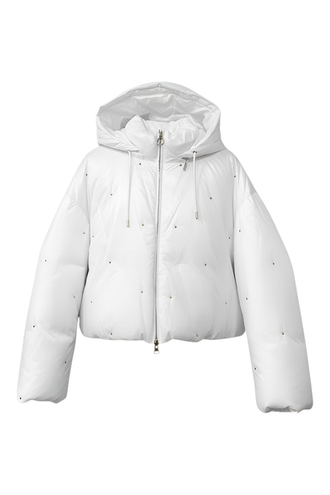 Glossy white down puffer with signature Valentino stud accents