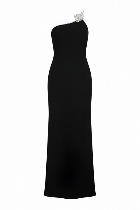 Valentino One-Shoulder Black Gown with Crystal Embellishment