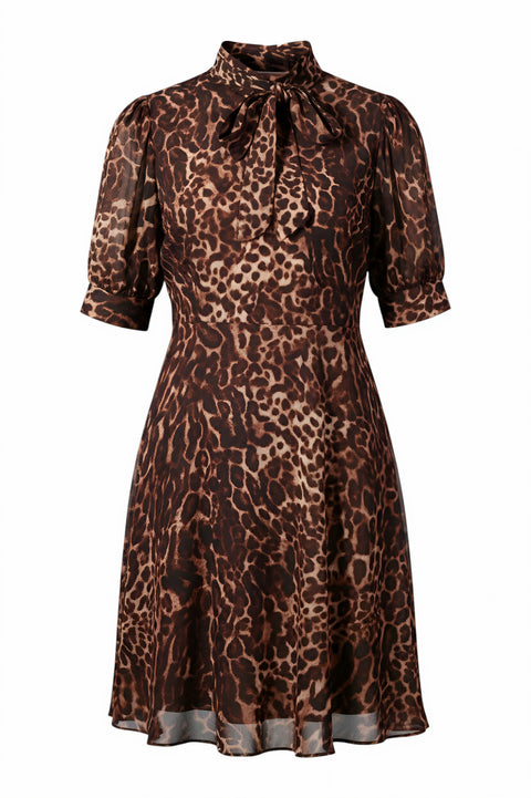 Mikael Aghal Leopard-Print Chiffon Tie-Neck Dress