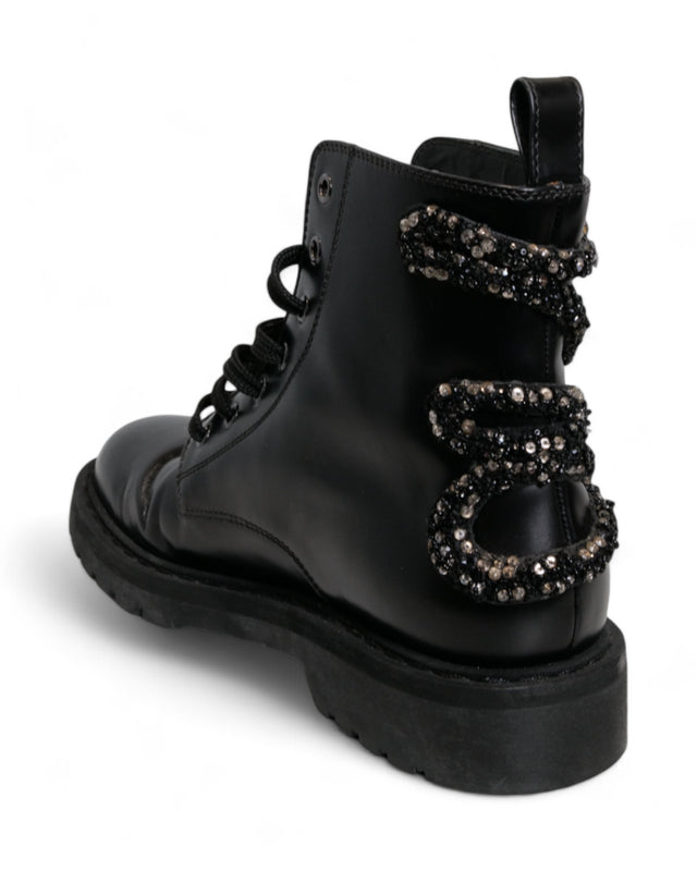 Valentino Garavani Women's Black Lace-Up Ankle Boots with Crystal Embellishments
