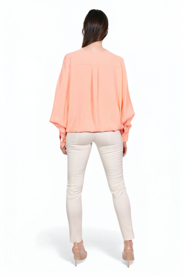 With its effortlessly chic aesthetic and luxurious detailing, this Valentino blouse brings a touch of playful elegance to any look—perfect for those who appreciate refined fashion with a hint of drama.