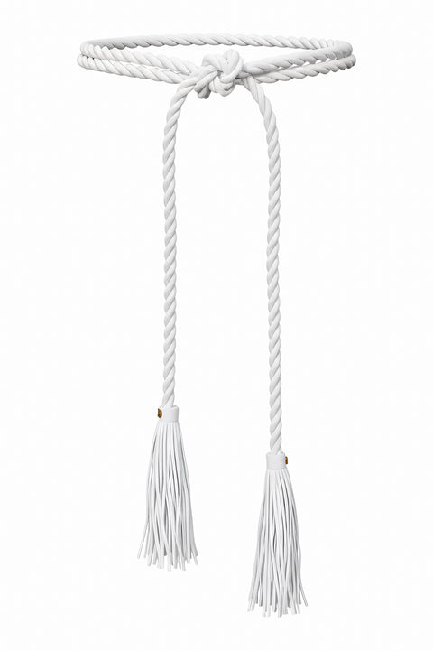 An elegant finishing touch for elevated ensembles, the Valentino Garavani Rope Tassel Belt features twisted cord construction with dramatic fringe tassels. Designed to tie and drape effortlessly, this belt lends a fluid, bohemian flair to dresses, coats, or oversized separates.