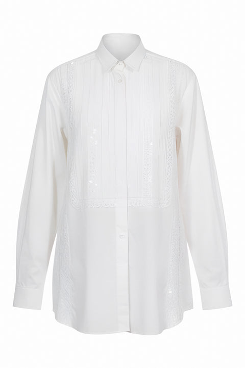 Material: Cotton poplin with tonal embroidered lace and sequin detailing